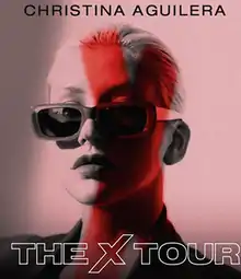 The X Tour was the sixth concert tour by American singer Christina Aguilera, in support of her eighth studio album, Liberation (2018). Led by LiveNation, it was surprise announced on the same day as the ticket sale by Aguilera herself on March 4, 2019, and serves as the European counterpart to The Liberation Tour the year before. The tour was scheduled to run concurrent with Aguilera's own Las Vegas concert residency, Christina Aguilera: The Xperience, with the tour running during the breaks of the residency. The tour was split into two legs, with the first leg consisting of 15 shows taking place across Europe, and an additional three in the second leg taking place in Mexico.[1][2][3][4]