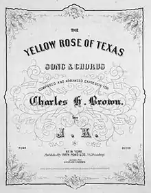 "The Yellow Rose of Texas" is a traditional American folk song dating back to at least the 1850s. Members of the Western Writers of America chose it as one of the Top 100 Western songs of all time.[1] Several versions of the song have been recorded, including by Elvis Presley, Willie Nelson[2] and Mitch Miller.