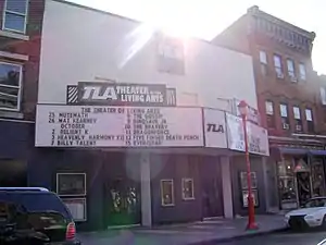 The Theatre of Living Arts (known commonly as the TLA) is a concert venue located on South Street in Philadelphia, Pennsylvania. The venue, which opened in 1988, dates back to the early 1900s as a nickelodeon. Over the years, the venue has seen many incarnations ranging from concert hall to movie theatre to theatre. Known for its acoustics, it was voted as one of the best concert venues in America by Complex.[3]
