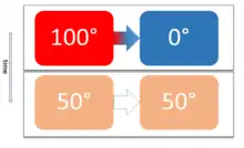 One form of thermal equilibrium is radiative exchange equilibrium.[7][8] Two bodies, each with its own uniform temperature, in solely radiative connection, no matter how far apart, or what partially obstructive, reflective, or refractive, obstacles lie in their path of radiative exchange, not moving relative to one another, will exchange thermal radiation, in net the hotter transferring energy to the cooler, and will exchange equal and opposite amounts just when they are at the same temperature. In this situation, Kirchhoff's law of equality of radiative emissivity and absorptivity and the Helmholtz reciprocity principle are in play.