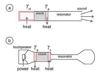 - Wheatley, John (1985). "Understanding some simple phenomena in thermoacoustics with applications to acoustical heat engines". American Journal of Physics. 53 (2): 147–162. Bibcode:1985AmJPh..53..147W. doi:10.1119/1.14100.