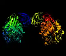 | View of Thermoactinomyces vulgaris neopulullanase showing dimeric structure | |