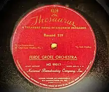 An article in Sponsor magazine's January 15, 1951, issue illustrated how programs provided by syndication services had evolved from "just a collection of indexed records".[2] The half-hour RCA Thesaurus program Concert Hall of the Air contained an average of eight songs per episode, with Arthur Fiedler directing the orchestra. While the recording's introduction played in the background, the local station's announcer read from a script, "Ladies and gentlemen, the Concert Hall of the Air, Arthur Fiedler conducting."[2] "Then eight selections follow, interspersed with brief descriptions of the pieces."[2]