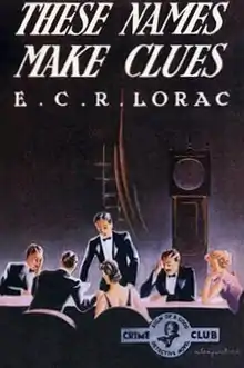 These Names Make Clues is a 1937 detective novel by E.C.R. Lorac, the pen name of the British writer Edith Caroline Rivett.[1][2] It was the twelfth entry in her long-running series featuring Chief Inspector MacDonald of Scotland Yard.[3] It was written shortly after Lorac had been elected as a member of the Detection Club, and was likely influenced by her experiences there. Originally published by Collins Crime Club, it was reissued in 2021 by the British Library Publishing as part of a group of crime novels from the Golden Age of Detective Fiction.