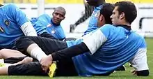 Motta's most prominent traits were his ball control, technique, vision and passing range, although he was also praised for his tackling, ability to read the game and consistent defensive attributes as a ball winner.[57][61][62][71][72] Due to his physical strength, heading accuracy and ability to make late attacking runs from behind into the penalty area, he excelled in the air,[57][60][71][73] and also possessed a powerful long-range shot;[57] despite his skills, he was also criticised for his aggression on the pitch and his lack of pace.[57][59][62][74]