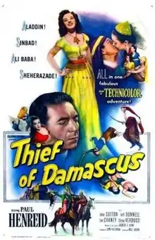 Thief of Damascus is a 1952 American Technicolor adventure film directed by Will Jason and starring Paul Henreid.[1] The film features a generous use of stock footage from such films as Joan of Arc. The film, produced by Sam Katzman, was preceded by his The Magic Carpet and followed by Siren of Bagdad.