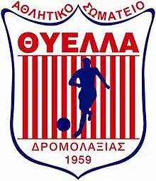 Thiella Dromolaxia (Greek: Θύελλα Δρομολαξιάς) is a Cypriot association football club based in Dromolaxia, located in the Nicosia District. Its colours are red and blue.[1] It has 1 participations in Cypriot Fourth Division (2006–07 Cypriot Fourth Division).[2]