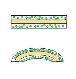 The pulvinus is a motor structure consisting of a rod of sclerenchyma surrounded by collenchyma. Such pulvini occur widely in the Fabaceae. In its extended position, the cells of the entire collar of collenchyma are distended with water. On receiving the action potential signal, the cells in the lower half of the pulvinus respond by expelling potassium and chlorine ions and taking up of calcium ions. This results in an osmotic gradient that draws water out of the affected cells, so that they temporarily shrink. This pulls the entire structure downward like a folding fan.