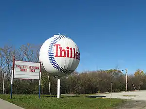 An area landmark was the giant baseball with the name Thillens on a large pole in the front of the ballpark on Devon Avenue. The ball was moved from Boys World, a clothing store on Devon that closed in the 1950s. Originally, the ball spun on the pole.