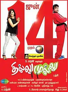 Thillu Mullu is a 2013 Tamil-language comedy film directed by Badri who earlier directed Veerappu and Ainthaam Padai. It is a remake of the 1981 film of the same name which was a remake of the 1979 Hindi film Gol Maal.[1] The film stars Shiva and Isha Talwar.[2][3] Prakash Raj enacted the character played by Thengai Srinivasan.[4] Kovai Sarala, Soori, Sathyan, Ilavarasu and Manobala played supporting roles.[5] The music was jointly scored by M. S. Viswanathan and Yuvan Shankar Raja who for the first time worked together.[6] While the film's muhurat took place on 24 August, the shooting commenced in September.[7] The film released on 14 June 2013 to highly positive reviews and became a super hit at the box office.