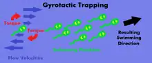 A sharp change in flow velocities can also prevent some motile plankton from orienting themselves or swimming vertically. This fluid mechanism is called gyrotactic trapping.[13]