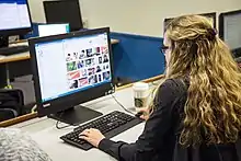 The Chromebox Tiny is a small desktop computer with 2-gigahertz Intel i3-5005U processor, 4 gigabytes of memory, a 16 GB solid-state drive, integrated graphics that runs Google's ChromeOS. It was designed for education and business. Its largest side measures about 7 inches square. It is 1.4 inches thick and weighs 2.2 pounds. Computers with this form factor are called "one-liter" machines in some countries that use the metric system. The Tiny can be mounted on the back of monitors or placed on walls with a VESA mount. The Chromebox Tiny has two USB 3.0 ports on its front and two more on its rear.[10] Dual-band 802.11ac Wi-Fi and Bluetooth 4.0 are both supported. An external antenna is included to improve reception. A mouse and keyboard come standard.[11]