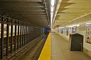 ![]() Southbound platform with L train in the distance | ||||||||||||||||||||||||||||||||||||||||||||||||||||||||||||||||||||