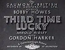 Third Time Lucky is a 1931 British comedy film directed by Walter Forde and starring Bobby Howes, Dorothy Boyd and Gordon Harker. It was made at Islington Studios[1] and based on the 1929 West End play of the same title by Arnold Ridley. The film's sets were designed by art director Walter Murton.