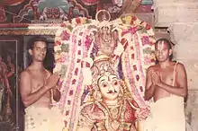This is the only temple where three Durgas or goddesses are present as the Shiva Durga, Vaishnavi Durga and Vishnu Durga. Saint Tirunavukkarasar has praised Bhairava (popular name of Shiva) in the temple with a special hymn. Bhairava is seen here with a tattoo on the left upper arm and with a trident and bell which is a form exclusively seen in this temple only.