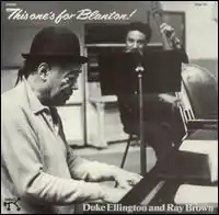This One's for Blanton! is a studio album by the American pianist, composer and bandleader Duke Ellington, duetting with Ray Brown, recorded in December 1972 and released on the Pablo label.[1] The title refers to early Duke Ellington collaborator and influential yet short-lived double bass player Jimmy Blanton.