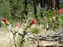 Thistles, even if one restricts the term to members of the Asteraceae, are too varied a group for generalisation; many are troublesome weeds, including some invasive species of Cirsium, Carduus, Silybum and Onopordum.[13] Typical adverse effects are competition with crops and interference with grazing in pastures, where dense growths of spiny vegetation suppress forage plants and repel grazing animals from eating either the thistle plants or neighbouring forage. Some species, although not intensely poisonous, do affect the health of animals that swallow more than small amounts of the material.[14][15]