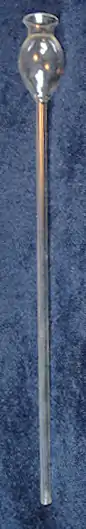 A thistle tube is a piece of laboratory glassware consisting of a shaft of tube, with a reservoir and funnel-like section at the top. Thistle tubes are typically used by chemists to add liquid to an existing system or apparatus. Thistle funnels are used to add small volumes of liquids to an exact position. Thistle funnels are found with or without taps.