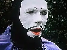 McGinty specialised in standing in the street, stock still and in complete silence, and in costume, for long periods of time like a living statue, and would disturb his immobility only to perform his trademark broad, saucy, pantomime wink to reward anyone who put money at his feet. When the Gardaí told him to move along for causing an obstruction in the street when crowds gathered to watch him, McGinty developed an extremely slow-motion walk that was really immobility in motion.[9] Most of his costumes were exuberant and fanciful, and he appeared in such guises as the framed Mona Lisa, or Dracula, or as a light bulb, teapot, or clown. He was charged with breach of the peace and with wearing a costume which could offend public decency, on 15 June 1991, for a street performance in which he wore nothing but a skimpy loin cloth that failed to cover his buttocks.[10] McGinty called himself a "stillness artist" and "a human statue".[11]