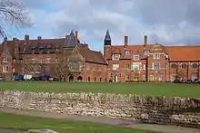 Yorke attended the boys' public school Abingdon in Oxfordshire. He felt out of place,[16] and got into physical fights with other students.[11] He found sanctuary in the music and art departments,[16] and wrote music for a school production of A Midsummer Night's Dream.[17] Terence Gilmore-James, the Abingdon director of music, recalled Yorke as "forlorn and a little isolated" thanks to his unusual appearance, but talkative and opinionated. He said Yorke was "not a great musician", unlike his future bandmate Jonny Greenwood, but a "thinker and experimenter".[16] Yorke later credited the support of Gilmore-James and the head of the art department for his success.[6]