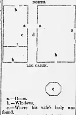 In January 1877, Williamson married 57-year-old Susan Kerk in Centralia, Missouri.[3] The couple were happy together, but their poverty forced them to travel around Missouri, selling wares to whoever might be interested. The following year, they came across a Dr. Middleton, whom directed them to go to Sedalia, where the local mayor, Col. Crawford, would likely find suitable work for them.[5] By the fall of 1889, the couple were living in a log cabin six miles outside Sedalia, but they abandoned some time in September or October. Williamson moved to the city and worked various odd jobs, but strangely, his wife was nowhere to be found. When queried about her whereabouts, Thomas replied that she had gone to visit some relatives in Calhoun, Illinois, and would return shortly.[5] When she didn't, Williamson claimed that she had died from renal colic while in Illinois, and being too poor to have her remains transported, he would have her buried there. Although some were suspicious of his claims, nobody looked further into the incident and it was soon forgotten.[5] The only one to take notice was farmer Dan Clossier, the new owner of the log cabin, whom was informed by Williamson not to dig out a certain location on the premises, claiming that "he had planted parsnip there".[6] At some point, Williamson became a member of the local Salvation Army branch, where he was sheltered.[7] As he was jobless at the time, he sought out work around the town, and would eventually find employment as a farmhand on the Moore farm, which was run by 59-year-old Jefferson "Jeff" Moore and his 29-year-old son, Charles.