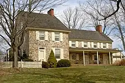 Thomas Bull House, also known as Robert's Plantation, Redding Plantation, and Mt. Pleasant, is a historic home located in East Nantmeal Township, Chester County, Pennsylvania. Originally built in 1715 and owned by Owen Roberts, the property was sold in 1729 to William Branson as part of the Redding Plantation, who eventually sold it to Thomas Bull. Thomas Bull was employed by the well known Van Leer family and worked at their historical Reading Furnace as the manager.[2] The house is in three parts. The oldest section was built about 1715. It is part of the two-story, four bay eastern section of the stone dwelling. The two-story, three bay, third section was probably built between 1783 and 1796. The interior of the older part features a circular staircase that wraps around the chimney. It is an example of late Georgian / early Federal architecture.[3]