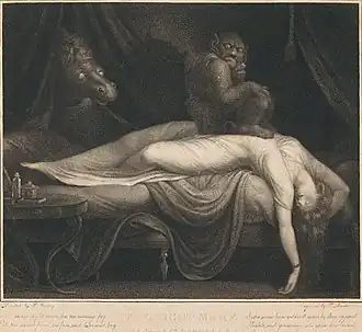 Burke's best known work was a popular print after Fuseli, The Nightmare (1783),[2] showing an incubus sitting on a sleeping woman. The print was a best-seller across Europe.[3]