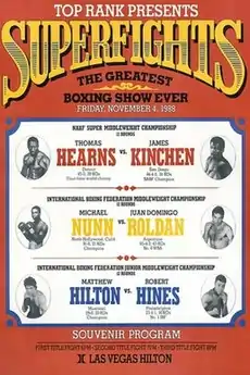 The Hearns–Kinchen fight was the main event of a fight card dubbed Superfights which also featured IBF middleweight champion Michael Nunn successfully defending his title against Juan Roldán and Robert Hines besting IBF light middleweight champion Matthew Hilton to capture that title.