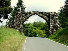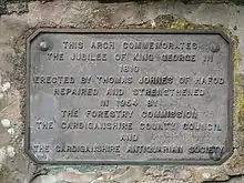 In addition to his concern for social welfare of those at Hafod, he was extremely interested in improving parts of Cardiganshire and actively involved himself in the building of roads and bridges. Upon inheriting the estate there was not one passable road within its boundaries. He built Hafod Arch in 1810 to commemorate George III's golden jubilee.[21] He also built a school for the poor of the community to attend at no charge. A fund was established to assist families hit by casualties. A physician was brought on staff and medicine was supplied. Each year he and Mrs. Johnes opened up their home at Christmas hosting a large event for everyone at Hafod including staff and tenants.[3]