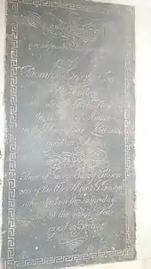 Parry was the third son and seventh child of Edward Parry and Anne Vaughan of Leighton Hall near Welshpool. The Parrys traced their ancestry to Elystan Glodrudd and Edward of Leighton Hall was a wealthy squire.[3] Thomas's father Edward died when Thomas was five years old and his early life is untraced but for his sailing to India at the age of 19. A cousin and brother-in-law, Gilbert Ross Jr. (1755-1815), married to Thomas's sister Elizabeth (1759-1825) and son of an aunt Aunt Ann Ross (née Parry), had connections in Madras. Colonel Patrick Ross was Chief Engineer at Fort St. George. Gilbert Ross Sr. was a partner in Ross & Burgie on Mark Lane[4] and died on 4 March 1788. His will was probated March 14th, 1788 (Source National Archives) and contains an affidavit signed by Thomas Parry 'of Billiter Lane', suggesting that Thomas was tutored to be a merchant under the guidance of his uncle, alongside his cousin Gilbert Ross Jr who inherited his father's business. Parry appears to have set out to India to expand the business of Ross who had an agent, Thomas Case in Chennai. Sailing from Deal on 4th March, Parry arrived in Madras on 27 June 1788.[5]