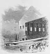 After the Civil War, a severe and prolonged shipbuilding slump devastated New York's shipbuilding industry,[22][23] and although the Continental Iron Works continued to build the occasional ship, it diversified into other areas, notably the supply of equipment for the burgeoning gas lighting industry, including the manufacture of gas holders, gas mains and entire gasworks.[19][24][23] The company also manufactured its own line of boilers, and became a pioneer in welding technology,[19][24] producing welded boiler furnaces, gas-illuminated buoys, steel digesters for the wood-pulping industry, and other products.[23] From time to time it also manufactured munitions, notably welded torpedo casings, and depth charge casings during World War I. After this war, the company increasingly focused on the manufacture of gas mains and large welded water pipes.[25] The company was liquidated in 1928,[26] following the retirement of Rowland's son.[27]