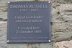 Convicted of high treason in Downpatrick, on 12 October Russell was hanged and beheaded. His remains were buried in the graveyard of St Margaret's Church, Downpatrick, a grave paid for by his friend Mary Ann McCracken.