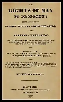 - The Rights of Man to Property! - Being a Proposition to Make It Equal Among the Adults of the Present Generation, and to Provide for Its Equal Transmission to Every Individual of Each Succeeding Generation on Arriving at the Age of Maturity. New York: Thomas Skidmore, 1829.