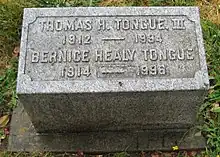 Justice Tongue was married to Bernice Healy.[2] They had three sons: John Richard, James Cadwell, and Thomas Healy.[2] Thomas H. Tongue III died May 31, 1994, in Hillsboro, Oregon and is buried at Hillsboro’s Pioneer Cemetery.[2]