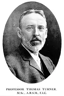 Thomas Turner Sc., A.R.S.M., F.R.I.C. (Birmingham, 1861–1951) was the first Professor of Metallurgy in Britain, at the University of Birmingham. The University was created in 1900 and the department founded in 1902.[1] He was instrumental in the early development of the sclerometer for testing hardness of metals. He retired in 1926. He was also a leading member of the Christadelphian church.