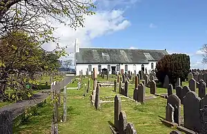 From his eighty-sixth year, Wilson was burdened with gout. He died at Bishop's Court on 7 March 1755,[5] the fiftieth anniversary of his wife's death. His coffin was made from an elm tree planted by himself, and made into planks for that purpose some years before his death. He had a strong objection, mentioned in his will, to interments within churches, and was buried (11 March) at the east end of Kirk Michael churchyard, where a square marble monument marks his grave. Reverend Philip Moore preached the funeral sermon.[1]