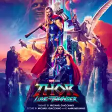 In December 2021, Michael Giacchino revealed that he would be scoring Love and Thunder; he previously scored Doctor Strange (2016) and the MCU Spider-Man trilogy for Marvel Studios, as well as Waititi's previous film Jojo Rabbit (2019).[1] A soundtrack album, featuring Giacchino's original themes along with the score composed by Giacchino and Nami Melumad, was released by Hollywood Records and Marvel Music on July 6, 2022. The single "Mama's Got a Brand New Hammer", the film's main suite, was released on June 30.[2][3]
