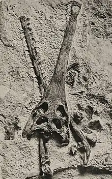 Thoracosaurus is an extinct genus of eusuchian crocodylomorph which existed during the Late Cretaceous and Early Paleocene in North America and Europe. The taxon had traditionally been thought to be related to the modern false gharial, largely because the nasal bones contact the premaxillae. Phylogenetic work starting in the 1990s instead supported affinities within Gavialoidea exclusive of such forms,[2] although a 2018 tip dating study simultaneously using morphological, molecular (DNA sequencing), and stratigraphic (fossil age) data suggests that it might have been a non-crocodylian eusuchian.[3] The genus contains the type species Thoracosaurus neocesariensis in North America,[4] and what is either Thoracosaurus isorhynchus or Thoracosaurus macrorhynchus from Europe; a recent review[5] argues that T. macrorhynchus is a junior synonym of T. isorhynchus, but it is unclear whether the type of T. isorhynchus allows differentiation of European and North American Thoracosaurus; if not, then T. isorhynchus would be a nomen dubium. A number of species have been referred to this genus, but most are dubious.[2]