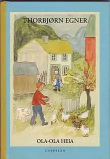 Thorbjørn Egners lesebøker (English: Thorbjorn Egner's Readers) were a series of sixteen readers for elementary school written by Norwegian author Thorbjørn Egner. Egner spent 25 years working on the series – consisting of collected literature as well as his own stories and illustrations – and they were published in 1950–1972.[1] The books were intended for children aged 8–15, which at the time corresponded to grades 2nd–9th.[1] Among the recurring characters was the young boy Ola-Ola, who grew up on a farm on the Norwegian countryside, but later moved to the city and had to adapt to a new life. Other stories took place in far-away lands, reminiscent of the environment in Egner's celebrated When the Robbers Came to Cardamom Town. There was also a selection of songs and poems in between the stories.