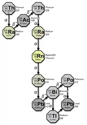 and the radiation from the rest of the decay chain, which gradually build up as 228