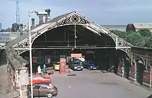 Thornaby was located on a busy and hence important section of the line for the NER, between Newport and Middlesbrough Docks to the east, and Bowesfield Junction to the west (where the Northallerton/Darlington and Durham Coast Lines diverge), which had the busiest signal box on the NER system. The main station structure had a glass-covered entrance in a unique design of ironwork, which led to a booking office and waiting rooms for four classes.[3] Built of brick, the additional stonework was made of creamy yellow stone. Carved embracing the Arts and Crafts Movement of William Morris, a competition between local stonemasons resulted in 104 different designs.[3] The competition was noted on a brass plaque in the entrance area, which was removed and melted down as part of the war effort during World War II. The platform canopies were also of a unique ironwork design to Thornaby, but lost their glass after a Nazi Luftwaffe bomb fell close to the station during the war.[3]