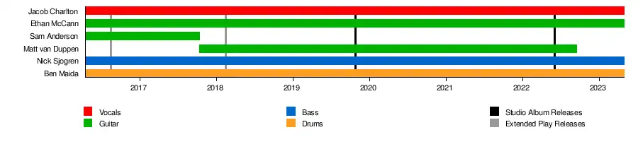 During late 2017 guitarist, Sam Anderson, left the band and was replaced by Matt van Duppen, who at the time was also guitarist for heavy-act Better Half. At the time Matt also assumed the role as the band's manager.[8]