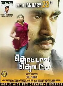 Thottal Thodarum is a 2015 Tamil romantic thriller film written and directed by noted critic and writer Cable Sankar. The film features Thaman Kumar and Arundhati in the lead roles, while Vincent Asokan plays a supporting role.[1] It was released on 23 January 2015 and received mainly negative reviews from the critics. The film was a below average grosser at the box office.[2]