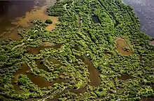 The Thousand Islands are divided roughly in half by the Minutemen Causeway. The formation comprises approximately 900 acres (360 ha) of salt marsh, mangroves, spoil sites containing upland vegetation, and maritime hammocks on shell middens.[4] Beginning in the late 1950s, small ditches were dug through the islands to allow water movement and fish access to inner areas of the succulent marsh for mosquito control.[5]