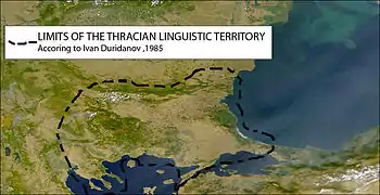 The Thracian language or languages were spoken in what is now Bulgaria,[8][9] Romania, North Macedonia, Northern Greece, European Turkey and in parts of Bithynia (North-Western Asiatic Turkey).