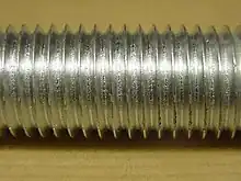 A threaded rod, also known as a stud, is a relatively long rod that is threaded on both ends; the thread may extend along the complete length of the rod.[1] They are designed to be used in tension.[2] Threaded rod in bar stock form is often called all-thread (ATR); other namses include fully-threaded rod, redi-rod, continuously-threaded rod, and TFL rod.[3]