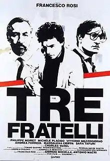 Three Brothers (Italian: Tre fratelli) is a 1981 Italian film based on a work by Andrei Platonov. It was directed by Francesco Rosi and stars Philippe Noiret, Vittorio Mezzogiorno, Michele Placido and Charles Vanel.