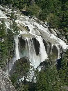 Three Chute Falls (also known as Hidden Falls or Tenaya Creek Falls[1]) is a waterfall on Tenaya Creek in Yosemite National Park, in the U.S. state of California.