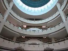 The exterior of the museum has sloping walls and is topped by a large glass dome.[4] There are bronze sculptures, large reliefs, and 1-km (1,094 yards) long "Ecological Corridor".