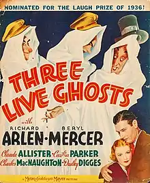 Three Live Ghosts is a 1936 American comedy film directed by H. Bruce Humberstone and starring Richard Arlen, Claud Allister and Cecilia Parker.[1][2]